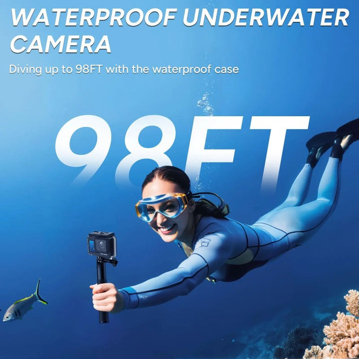 Dive in! The included waterproof case allows you to explore depths up to 30 meters (98 ft), making it ideal for swimming, surfing, snorkeling, and diving without any extra gear.