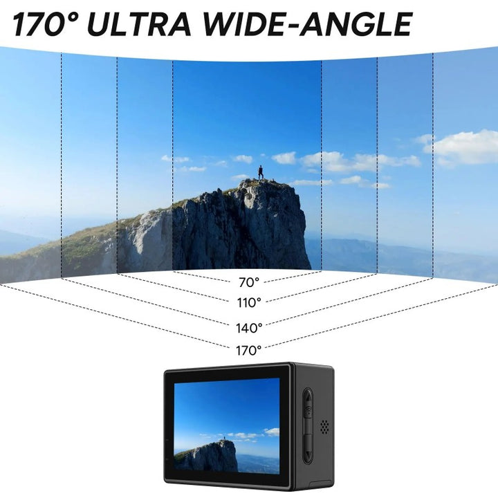 Never miss a moment with the 170° wide-angle lens and 16MP sensor. Get expansive, distortion-free shots with incredible clarity, perfect for group adventures and immersive POV footage.