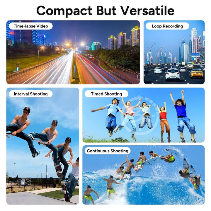Choose from multiple resolutions: 4K@30fps, 2.7K@30fps, 1080P@60fps, and more. Optimize your recording for quality or file size, making it versatile for any activity.