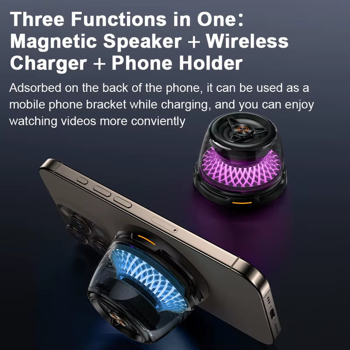 Cargador inalámbrico con fuerte imán Carga rápida de 15 W para teléfono móvil Con luz nocturna colorida Escucha música mientras cargas Versión Bt5.3 |