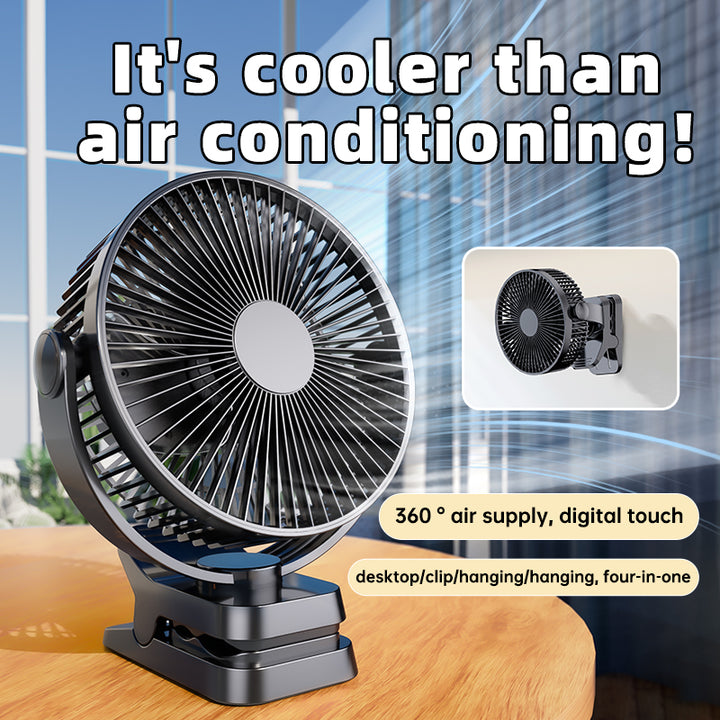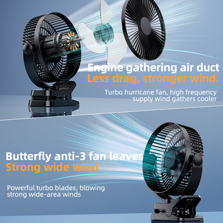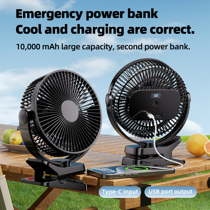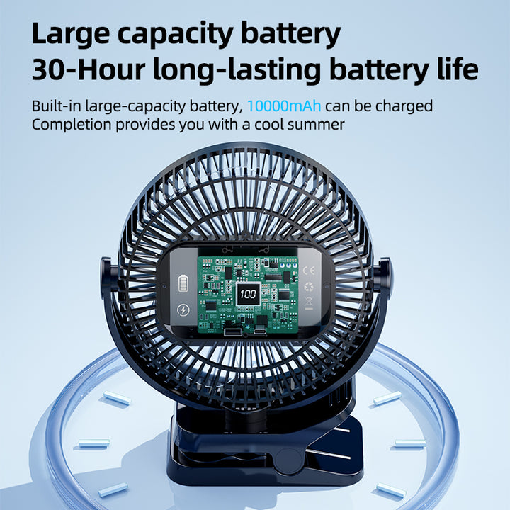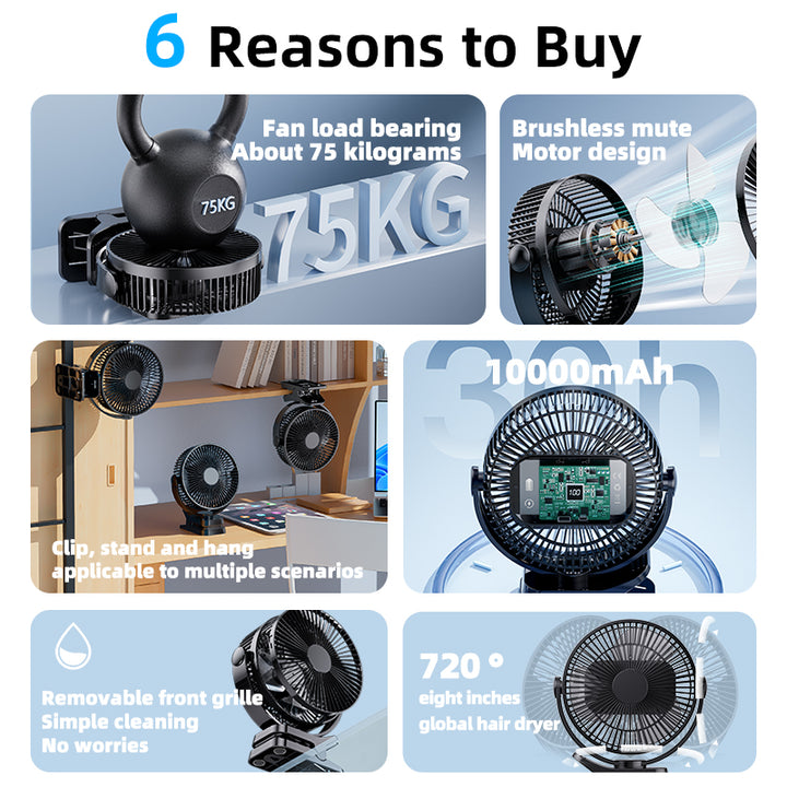 Ventilador con clip de 8 pulgadas - Mini ventilador de escritorio de 12000 mAh, recargable, colgante, con 5 velocidades, flujo de aire potente, ventilador silencioso para personas mayores.