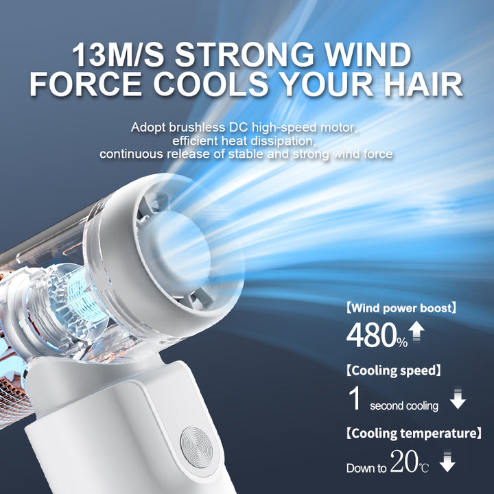 → Flujo de aire 3 veces más fuerte que los ventiladores de mano estándar (probados a 0,5 m): enfría la piel instantáneamente en 8 segundos. -