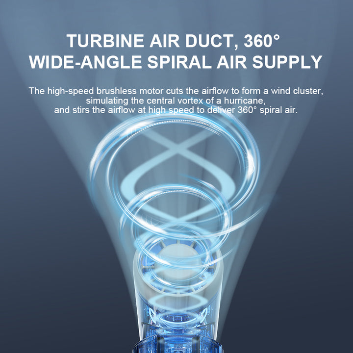 * “Viento ciclónico en la palma de la mano: 8 horas de autonomía, control de velocidad con un solo toque y diseño ultraportátil para lugares de trabajo y viajes”. *
