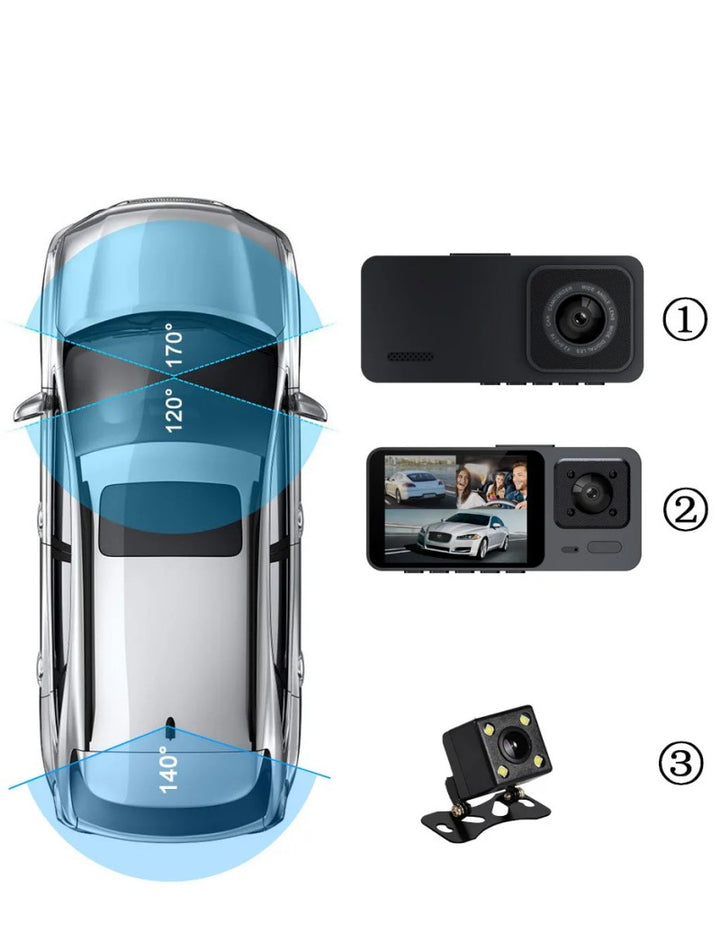 🚗 3-CHANNEL FULL COVERAGE – Simultaneously record the road ahead, inside the cabin, and the rear view. Never miss a detail.
