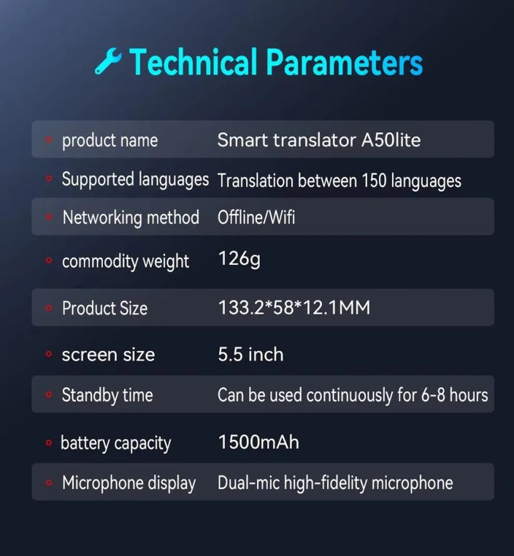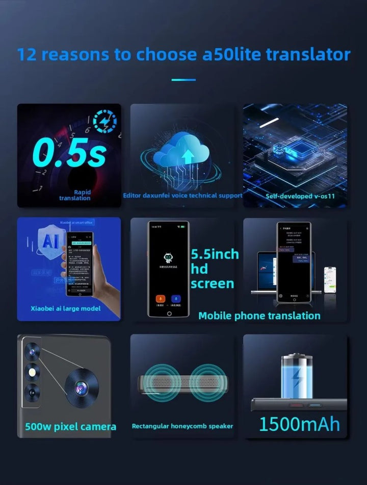 A50 Multifunctional Smart Translator - Multi-Language, Business Meeting Recording, Real-Time Interpretation, Offline