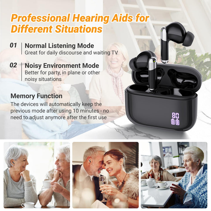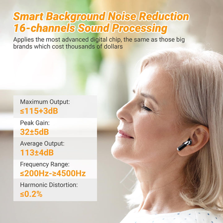Audífonos de venta libre para personas mayores | Cancelación de ruido con IA de 16 canales | Recargables