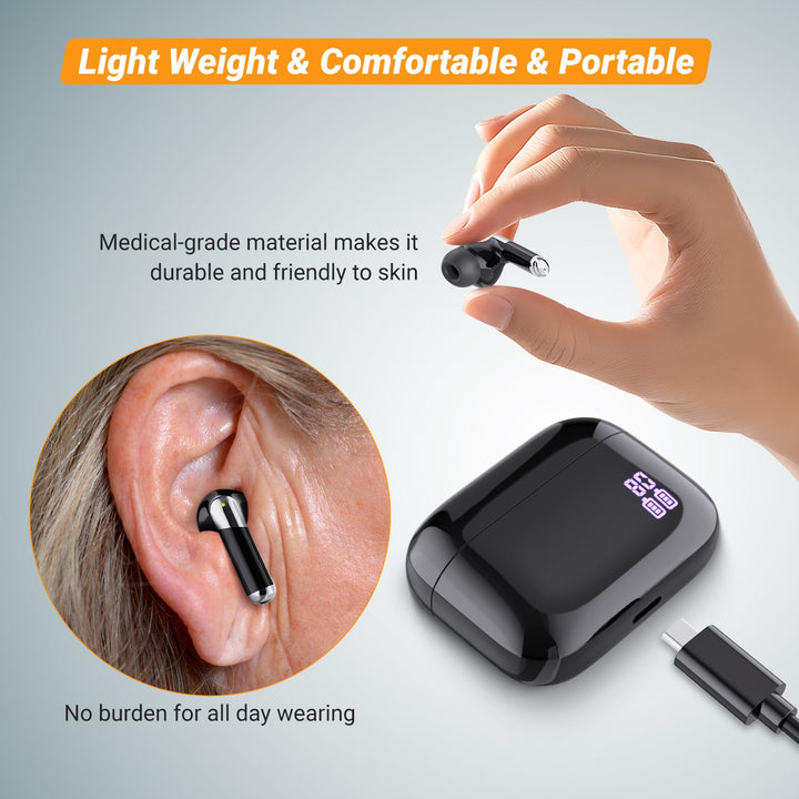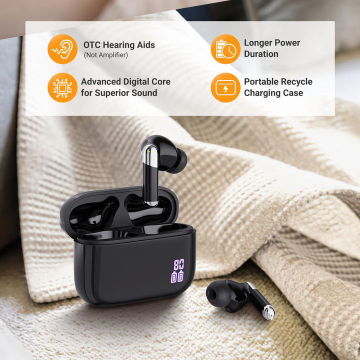 Verdadero Audífonos de venta libre Diseñado para un uso sin esfuerzo. Sin configuraciones complejas: solo una audición nítida. Ideal para personas mayores y activo adultos Buscando confianza en las conversaciones. -