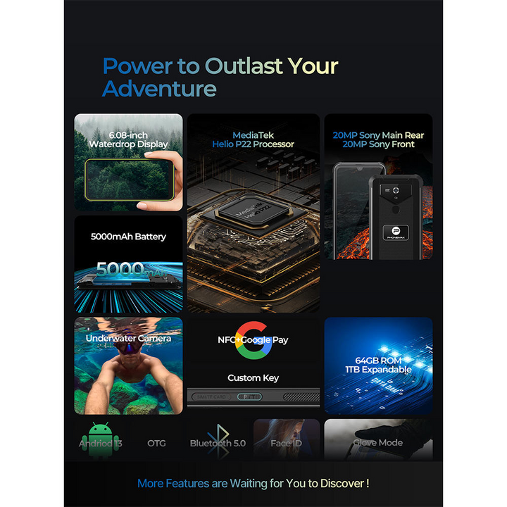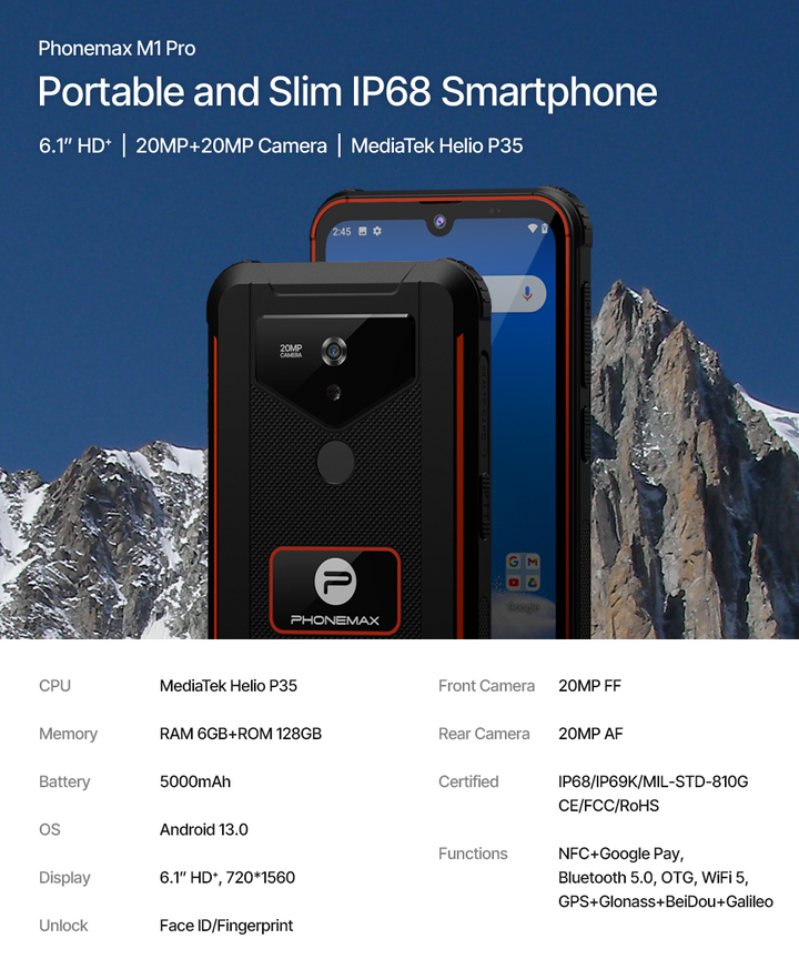 Phonemax M1 Pro: Teléfono robusto con cámara Sony de 20 MP + 20 MP | 5000 mAh y resistencia al agua IP68