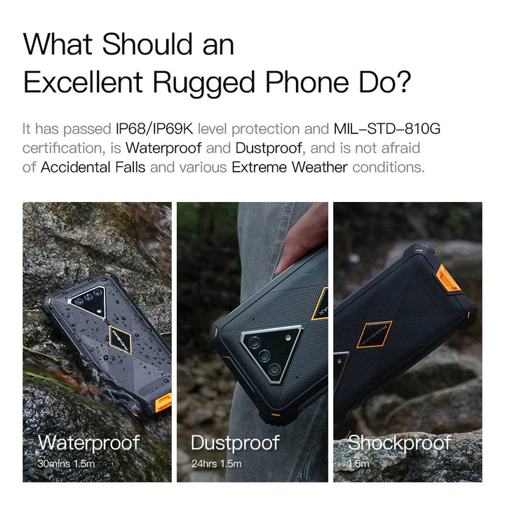 Resistencia a golpes, polvo y agua de grado militar: sobrevive en lugares de trabajo y selvas.