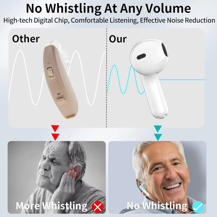 🔊 Amplificación auditiva clara: Restaura eficazmente el sonido natural para Pérdida auditiva leve a moderada . Mejora la claridad y el realismo en entornos de escucha cotidianos. (Nota: El silbido inicial es normal y se resuelve con el ajuste del ajuste).