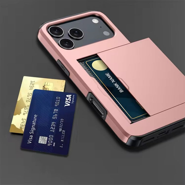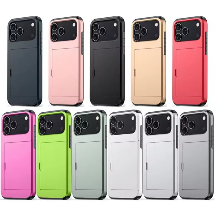 Slide Wallet Credit Card Slot Phone Case For iPhone Air 17 Pro 16 15 Plus 14 Pro Max TPU + Hard PC Armor Shockproof Back Cover