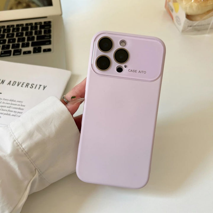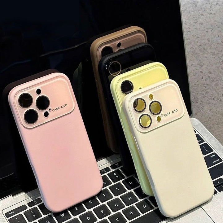 Frosted Liquid Silicone Phone Case For iPhone 17 Air 16 15 14 13 12 Pro Max Full Frame Shockproof Large Window Lens Film Cover
