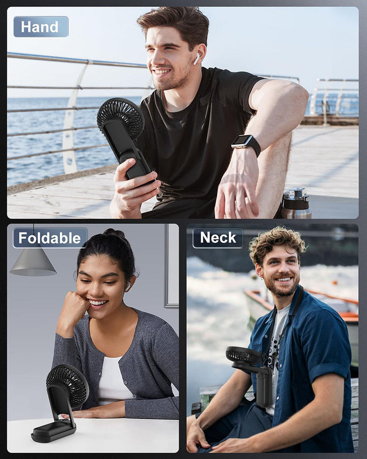 Your instant cooling Swiss Army knife. Use handheld, hang around your neck (included strap), or deploy as a desktop fan. Folds flat to pocket-size ā ready for metros, camping, or makeup touch-ups.