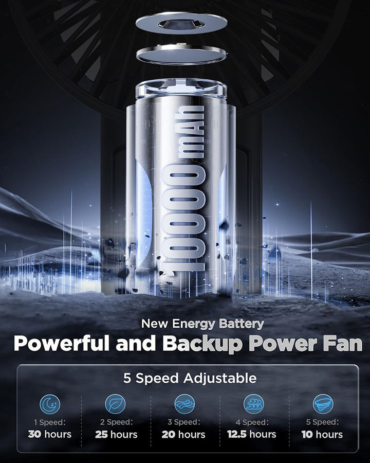 Sleep/office-friendly tech! Ultra-whisper <15dB operation with 5 gradual wind levels + AI Natural Wind Mode (auto-adjusts airflow). Perfect for naps, focus sessions, and noise-sensitive spaces.