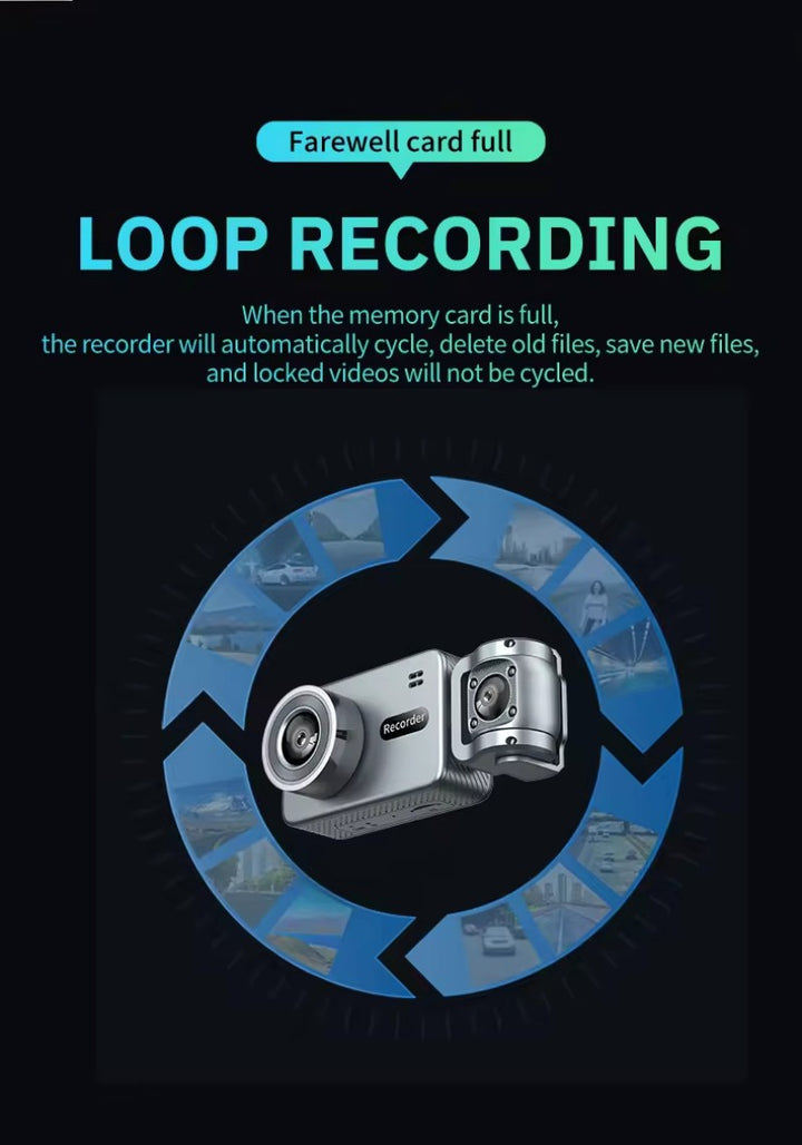 šĀ Seamless Loop RecordingĀ ā Automatically overwrites the oldest video so you never run out of space.