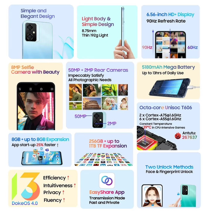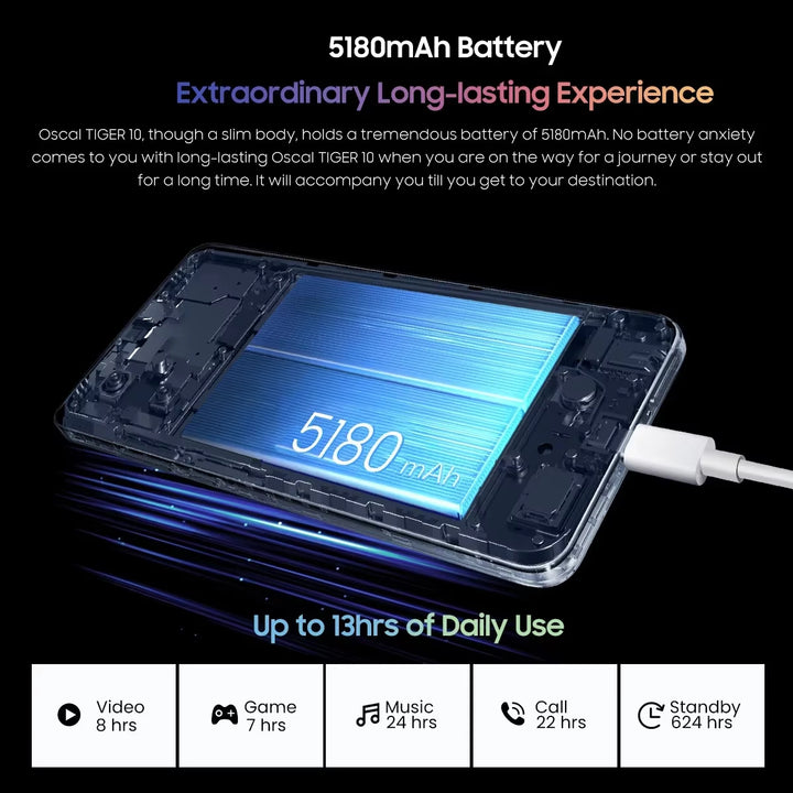 OSCAL TIGER 10 Dual SIM Android 13 3GB+128GB Octa Core 50MP Camera 5180mAh Mobile Phones Wholesale Fashion LTE Connectivity