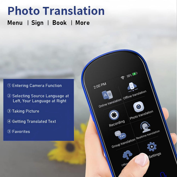 📷 Photo Translation On-The-Go: Features a 5MP camera that can translate text from 41 languages offline and 75+ online. Perfect for instant understanding of menus, signs, and documents.